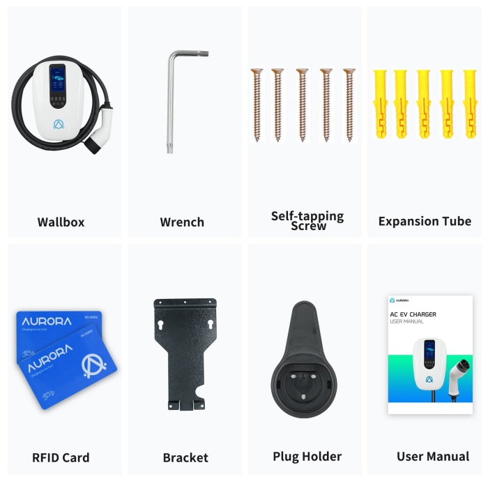 Elektromobilio įkrovimo stotelė Aurora, Type 2, 11kW, 5 metrai kabelis, Balta